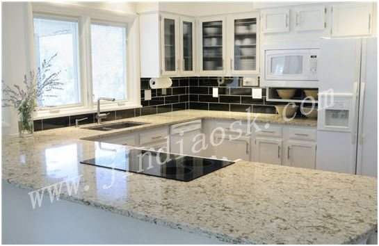 加工時開料、拼接和開孔需要注意的事項:在開料前要先比對好使用的兩塊板材存不存在色差問題,防止安裝好后影響整個臺面的美觀;拼接是一個比較重要的環節,考慮到美觀性問題,所以要做到無間隙拼接,而且在拼接縫時要用與板材相匹配的樹脂膠(石英石廠家調制或者由廠家指定)給臺面開孔,一般臺面加工好后大多數人會選擇讓工廠開孔,而大家要注意的是開孔應選擇圓角開孔,因為直角開孔的話有可能會對臺面后期開裂造成很大影響的;拼接縫兩邊打磨時一定要使用水磨,做到和板材表面光度一致,如果打磨不細致的話,時間一長打磨處積塵會造成臺面變臟發污,很難清理的,影響臺面美觀。