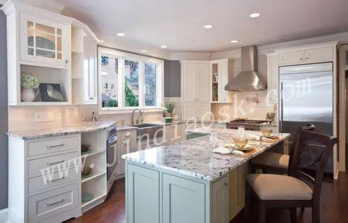 石英石、大理石在居家生活中、商場中接觸的比較多,而使用比較多的地方就是廚房里的臺面了,因為石英石板材是石英砂的高硬度和在真空條件高頻壓制成型的,因此石英石、大理石能成為櫥柜臺面的歡迎品。