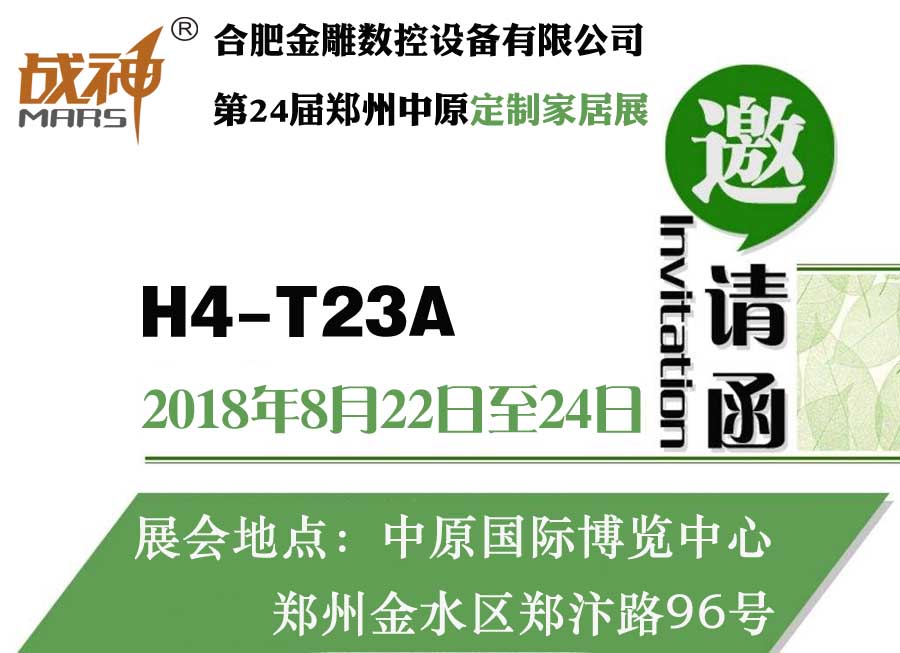 第24屆中國鄭州定制家居暨木工機械博覽會于2018年08月22日-2018年08月24日盛大揭幕,合肥金雕數(shù)控戰(zhàn)神數(shù)控設備將繼續(xù)與大家共享此次盛宴!!