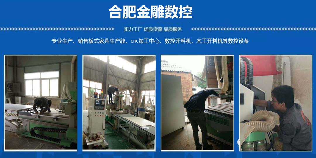 合肥金雕數控是數控開料機、全自動開料機、木工雕刻機、板式家具生產線的生產廠家,價格低,質量好,售后服務有保障,歡迎廣大朋友們來廠參觀,洽談合作業務。
