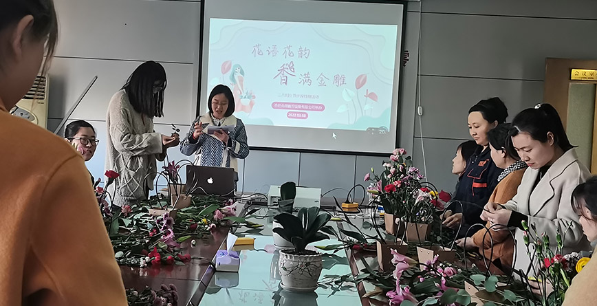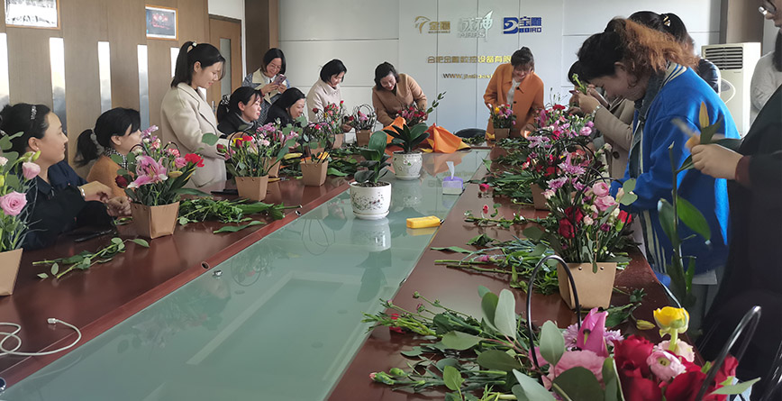 鮮花贈美女,溫馨抒情懷。在第112個“三八”國際婦女節(jié)當(dāng)天,為進一步豐富公司職工的文化生活,提升女性綜合素養(yǎng)、培養(yǎng)藝術(shù)品位,加強女職工的溝通與交流,激勵女職工為公司的發(fā)展增光添彩。3月8日下午3:00-4:30,合肥金雕在公司會議室舉行了主題為“花韻花語 香滿金雕”的插花活動。