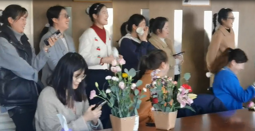 活動在輕松愉快的氛圍中展開,女同志們在楊總的指導(dǎo)講解下,結(jié)合各自手中的花材特點和審美情趣,從鮮花的取材、剪葉、構(gòu)圖、布局開始,不斷的進行嘗試和實踐,忙得不亦樂乎。高總出席現(xiàn)場,為楊總送上自己準(zhǔn)備的花束,祝福女神節(jié)節(jié)日快樂!