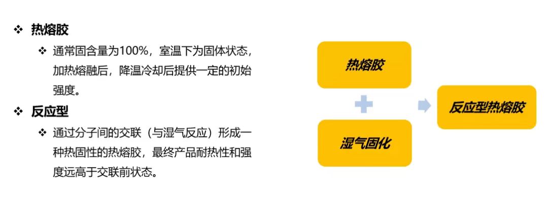 PUR是Polyurethane Reactive的縮寫,是一種比較常見的反應型聚氨酯熱熔膠,它兼具普通熱熔膠和反應型2個特點: