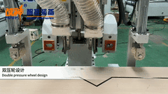 搭配上雙壓輪,有效保證工件精度,自動測厚,孔位更精準,適用不同長度木門加工。